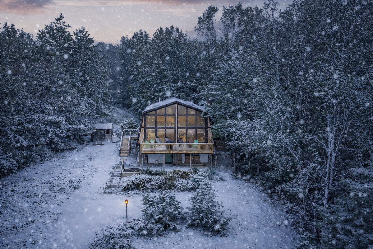 Chalet in the Clouds!⛅️ Month to Month lease available. Relax & Rejuvenate w/ panoramic views of White Mountains from any of the 4 decks of Kailaśa Chalet! Perched on top of a mountain overlooking Mt Chocorua & Silver Lake w/ majestic views of Mt Washington Valley. So easy to get lost in the beauty of Kailaśa! Wake up to the experience of being above the clouds overlooking the valley! Settle down after dinner around the stone fireplace while watching your favorite shows on 65" TV