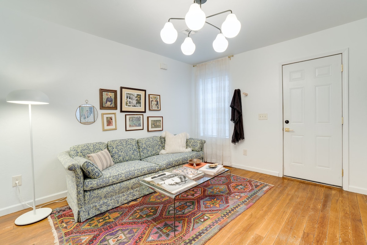 Beautiful garage apartment with unique hand-built glass garage door with lots of natural light. The main house is a duplex with two garage apartments in between. This listing is for one of the garage apartments. Premium 65-inch TV, Netflix, and high-speed Wi-Fi internet. Comfortable king-sized wrought iron bed and a handsome walnut desk for work/study.