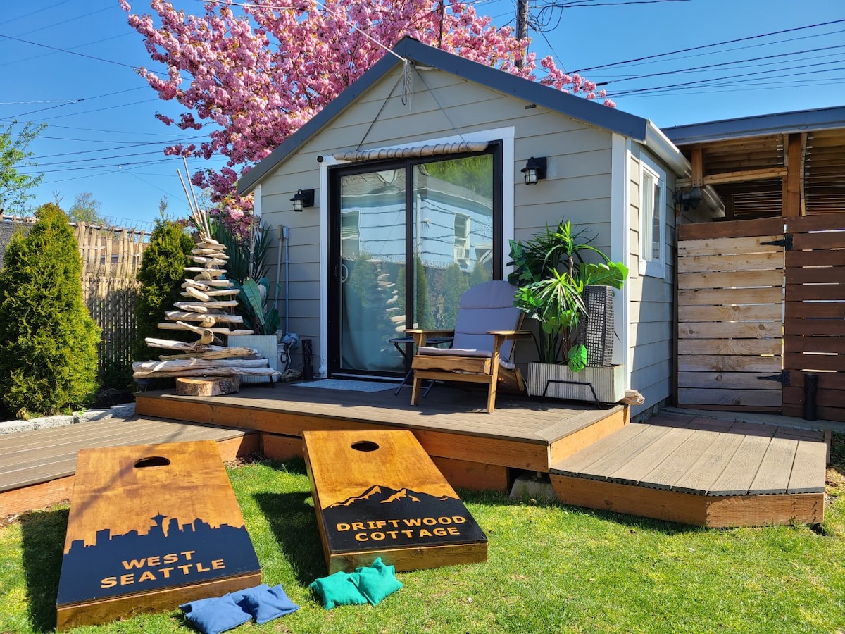 Find your perfect getaway in this charming and peaceful cottage. Enjoy cooking meals in a fully equipped kitchen, complete with full-sized fridge and oven/stove. Curl up next to the electric fireplace and enjoy the quiet privacy of the space, or walk to the Junction for the best record store and boutiques in West Seattle. Steps away from coffee shops, restaurants, a grocery store and a 10 minute walk to the beach and majestic Lincoln Park! Conveniently located 20mins from SeaTac Airport.