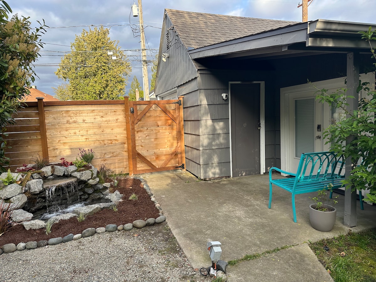 This Tiny (340 Square ft including loft) Garden House is the perfect retreat and tiny living experience for anyone visiting Tacoma or the surrounding area! Equipped with all of the essentials - a queen-size bed (loft), full-size pull out sofa, smart TV, Fireplace, A/C, refrigerator, gourmet coffee maker, 2 induction cooktops, spa shower with 9 different shower heads, fast Wifi, private entrance with a charming patio, and more! The Garden House is sure to please any traveler passing through.
