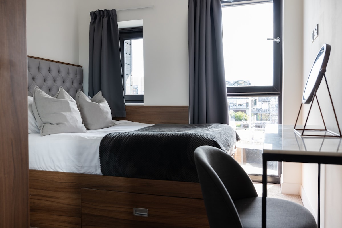 Waterfront apartment, centrally located with lovely views over looking the Brayford Waterfront, views from the bedrooms of the cathedral and castle. Minutes walk from the train station and high street, a walk up steep hill will take you to the cathedral quarter. Directly opposite on the waterfront you have a choice of numerous bars, restaurants and a cinema, the university & Engine Shed venue. Due to the central city centre location you may experience some foot fall noise, evenings/weekends.