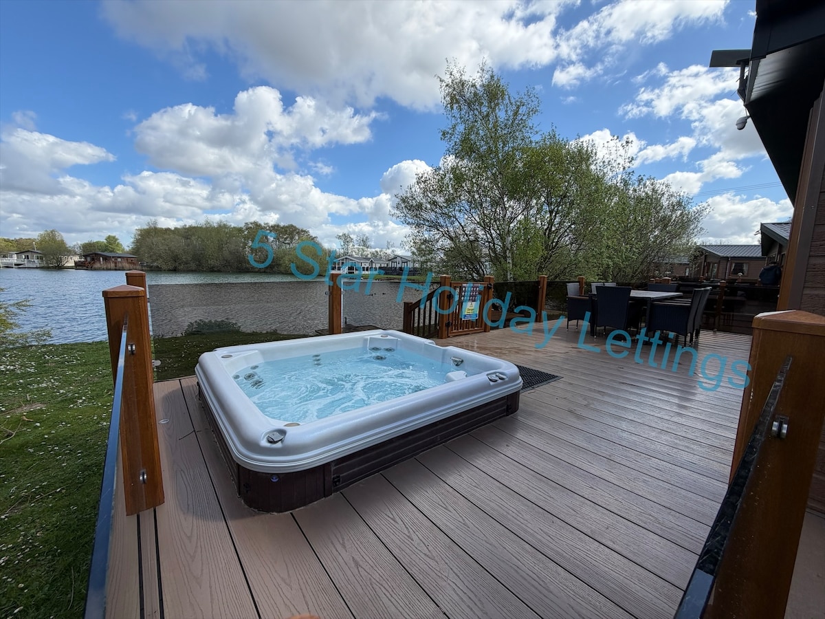 Situated on the lake in Woodhall Country Park, Ella Lodge is the ideal place to relax and unwind. Perfect for lazy evenings in the luxury hot tub, drinks on the deck, barbecues overlooking the lake or a cosy night in watching the cinema tv. Take a 15 minute stroll into the charming village of Woodhall Spa through the woods where you will find a great selection of pubs, restaurants, café’s and independent shops. Visit our website Ellmaxlodges for more information
