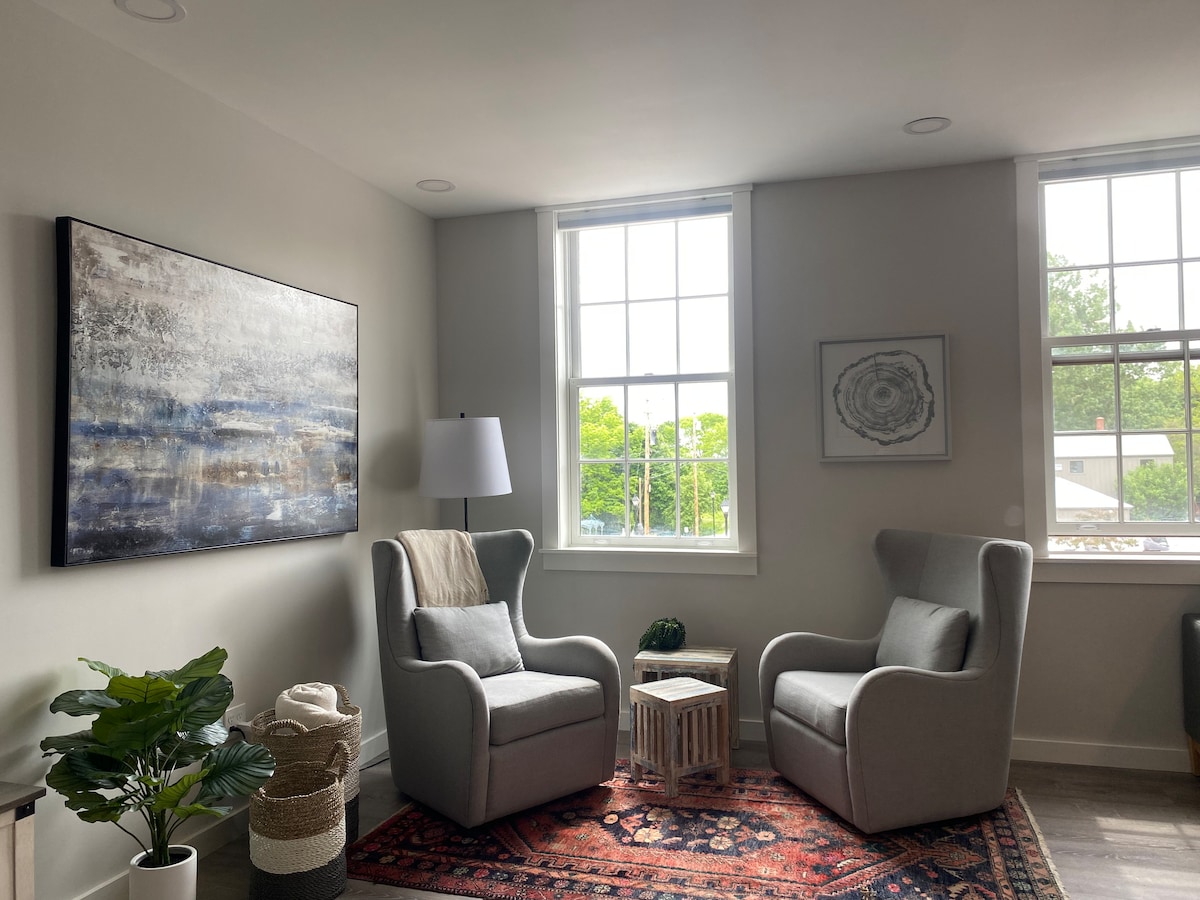 Come and experience the peaceful, yet vibrant, atmosphere of Belfast! This downtown loft is a great place to stay, being just two blocks away from the beach. Enjoy the morning light in the two bedrooms, both facing the harbor, while the living room offers a stunning view of Main Street. The loft is full of character, with its refurbished floors, exposed brick and rafters, large windows, and newly renovated kitchen and bathroom. Make yourself at home in a calm and inviting atmosphere.
