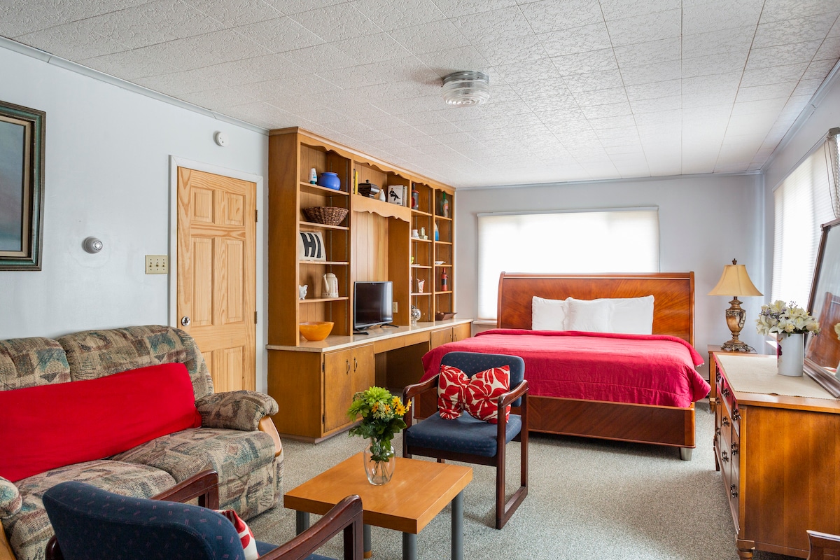 This great room is part of my house that is featuring a private entrance, private bathroom, and a kitchenette but not a full kitchen. It is also an old house but well maintained in the neighborhood but not suitable for children. This vibrant architecture with brick, large porch, large windows, and a sense of the 18th century beauty. It’s also located between an highway and a main road, meaning cars noises are present. Please only book if you feel comfortable with the location, a car is ideal.