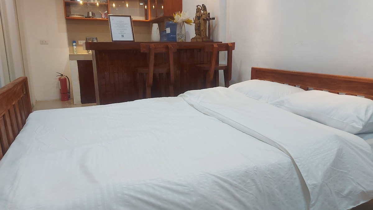 This room can accomodate 2 guests. Affordable, simple, and very clean place where you can have a comfortable and relaxing stay. We also have a complimentary breakfast for 2.