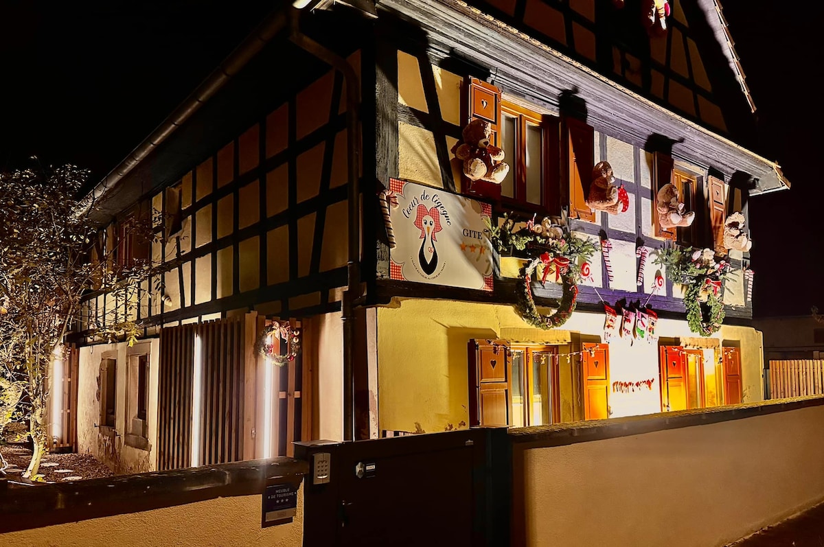 Cette maison haut de gamme est située dans un petit village typiquement alsacien à moins de 10km de Strasbourg dans un cadre bucolique. Elle permet d'accueillir 10 hôtes dans 5 chambres indépendantes ayant leurs propre salles d'eau. La cuisine est complètement équipée, et la salle à manger suffisamment large pour dîner tous ensemble. La propriété dispose d'un parc privatif et d'un espace de parking. Une des chambres est accessible aux personnes à mobilité réduite. Wifi, Barbecue, vélos...