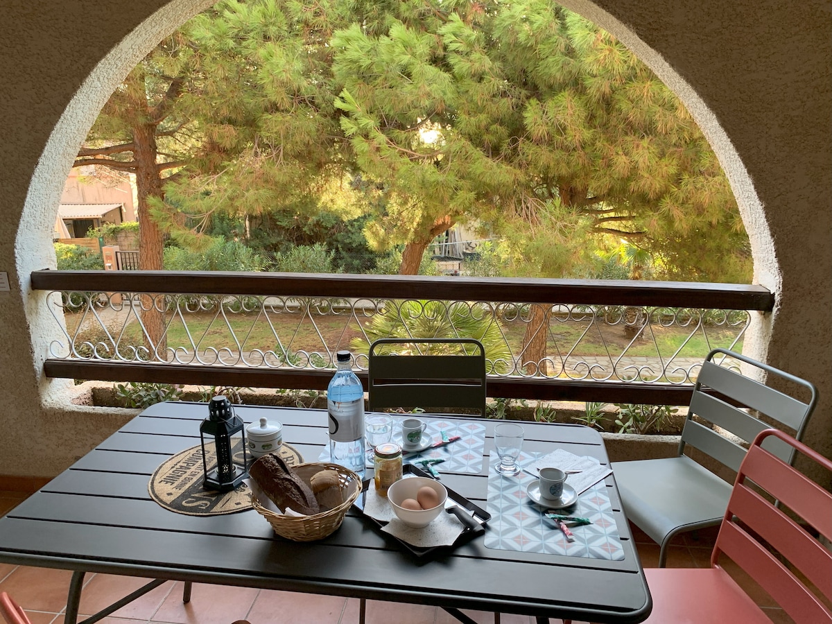 Dans résidence para hôtelière avec piscine et jardin T2 au 1er et dernier étage , vue mer et plage, Terrasse. Appartement climatisé : 1 chambre avec 1 lit en 140 et TV, placard, canapé lit en 140 dans le salon TV + fibre internet. Cuisine équipée. Douche à l'italienne. Linge de lit et de toilette fourni et installé comme à l'hôtel. Ménage arrivée et départ inclus. machine café Senseo. Accès sécurisé à plage et piscine (transats).