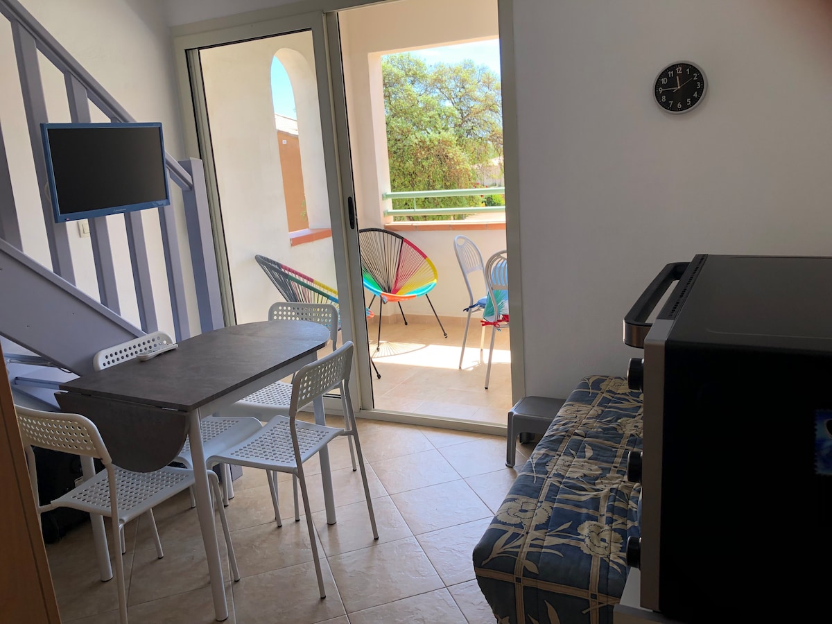 Welcome to our charming, minimalist-style studio, ideally just 900 m from the beach with a beautiful mountain view. Caro and Simon, a French-English speaking couple, will warmly welcome you and ensure a pleasant stay. Spacious and bright, the studio includes a fully equipped kitchenette, a modern bathroom with shower, an indoor dining area, and a large private terrace to relax to the sound of cicadas. High-quality bedding, double or twin beds. Ideal for a peaceful stay between sea and nature.
