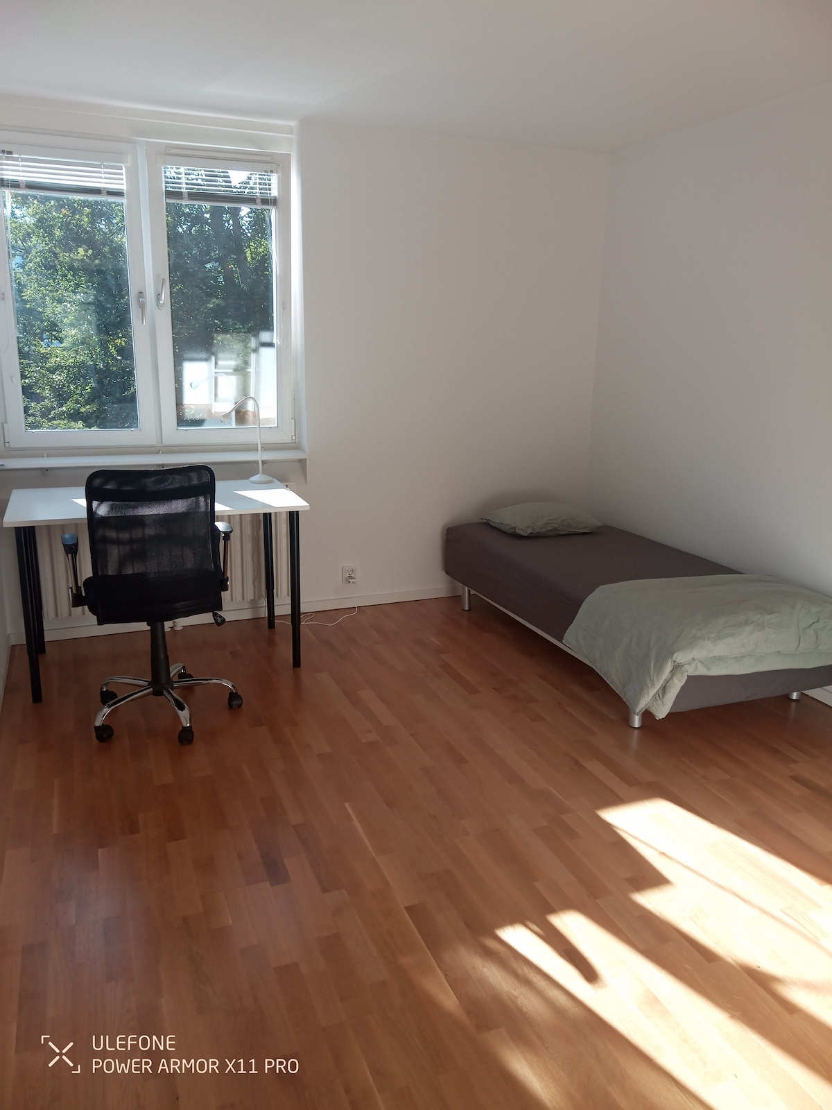 Welcome to our spacious 100 m2 three bedroom flat in Marieberg. The apartment is on the top floor of the "Gamla Kooperativa" a nearly 100 year old beautiful house. It has high ceilings with exposed beams and wooden cladding. A balcony looking over the fields, and a garden with two separate seating areas. The perfect place to relax with friends and family. The house is also walking distance to two swimming lakes and a nature reserve.