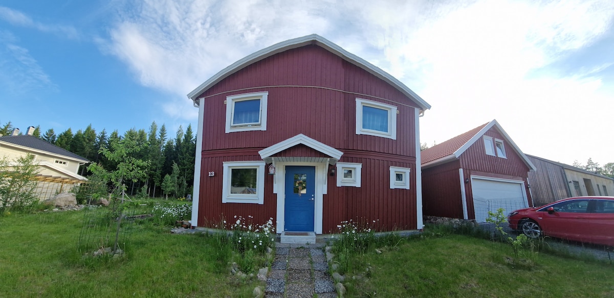 Welcome to a calm and recently renovated house close to Linköping city center. The house has 4 bedrooms, 2 toilettes, a bathroom with a shower and a jacuzzi, large terrasse with a glassed-in porch. Modern kitchen: 2 fridges and freezers, 2 ovens, a microwave, an espresso machine, etc Bedrooms: 1 double room and 3 single rooms Laundry room with a washing machine and a tumble drier. In the area: Children playground, supermarkets, large natural area (forest), river swimming place. Bus stop 200m.