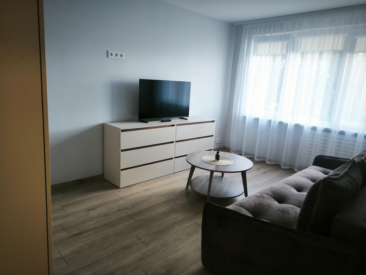 Cozy apartment (42sq.m.) close to the central part of the city. 10-15min walk to train or bus stations, city boulevard, bicycle museum, easily reached all other parts of the city. The apartment is well equipped -TV, wifi, hair dryer, iron, washing machine, big fridge, kettle. You will also find clean linen and bedding, shampoo, soap, shower gel, towels, dishes, glasses - so you can comfortably spend the days here.