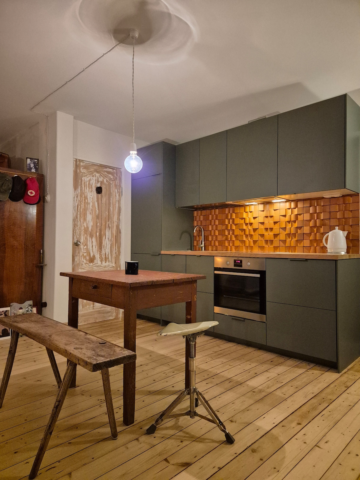 The building was designed for Lieutenants, Generals and Pilot officers working at a neaby Zokniai airbase shortly after the WW2. That means the building was constructed to show its grand features such as high ceiling and wide doors, not to mention it’s most prestigious location. Keep it simple at this tiny and minimalist place - it’s only 15 sq meters which makes it more like a hotel room than an apartment. Due to its size we recommend it for a solo traveler, although couples are welcome.