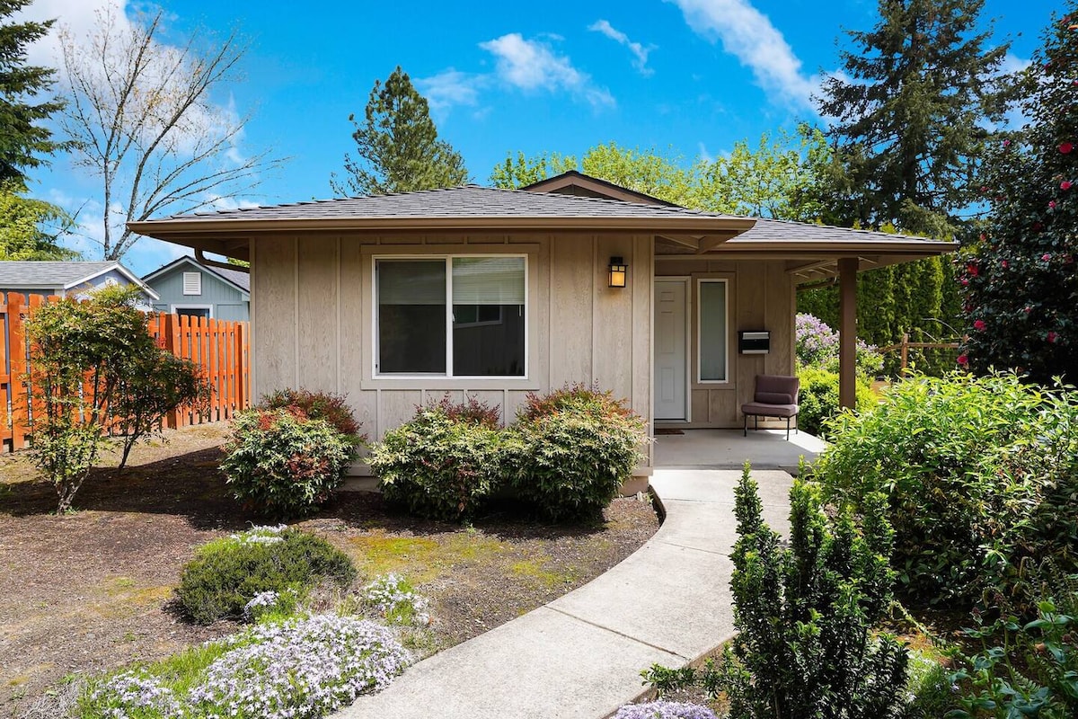 Stay @ our Vintage Hometown FAVE - where guests always rate us 5-stars* for clean, fresh, and comfortable. Enjoy this spacious, inviting, and warmly curated bungalow. Packed with practical amenities plus off-street parking and fast WIFI. Truly ideal for longer stays. A cozy home base for work, play, and rest. Located near Albany hospital, Costco, and downtown restaurants/shops. Drive 20 minutes to Oregon State Univ. Close enough for a day trip to beach, local wineries, or the mountains.
