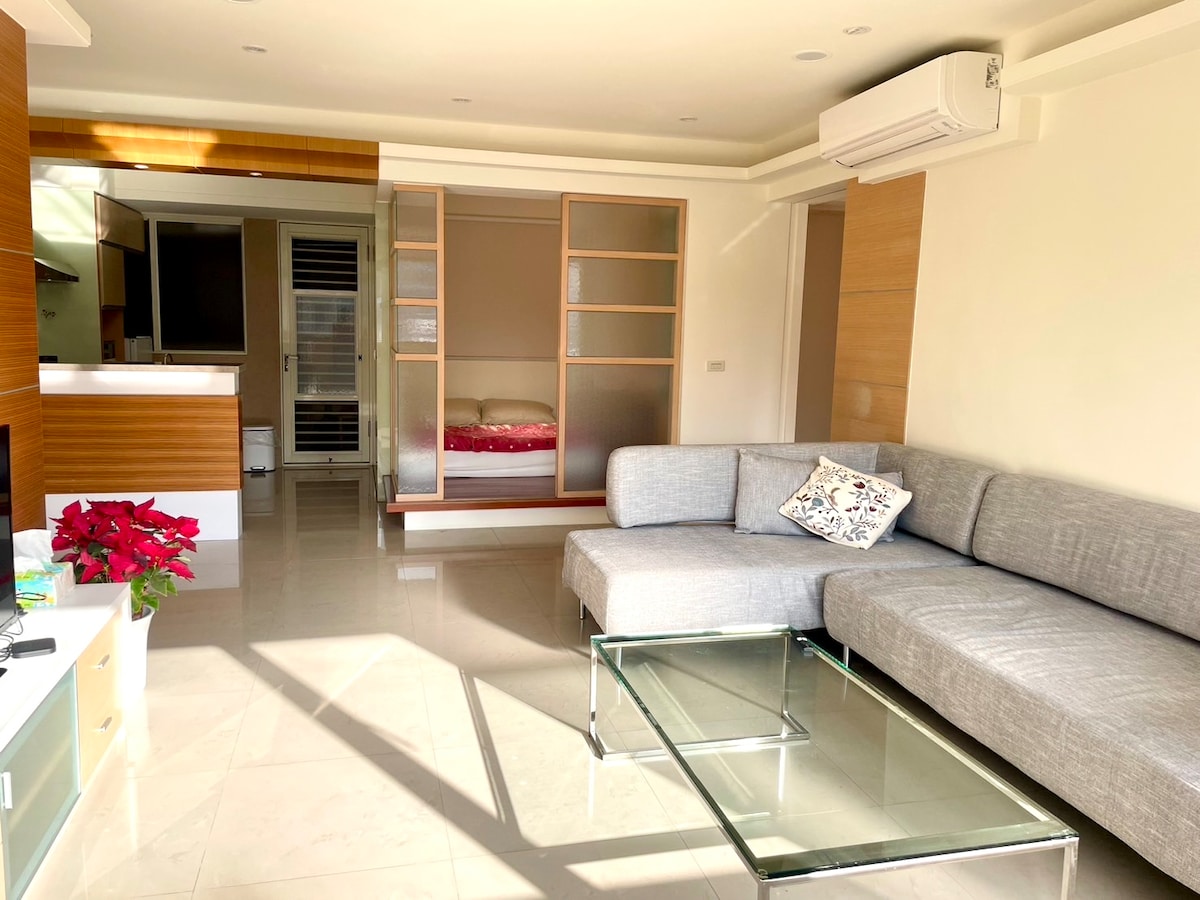 Well designed and well decorated, with great views. A relaxing, peaceful place within a few hundred meters of Tianmu's expat-friendly amenities, dining and shopping - as well as the major international schools. Plentiful fresh air and sunlight, as well as a large adjoining terrace garden and outdoor furniture. Steps from Tianmu Park, the trailhead of a popular hiking trail and easy public transportation. LBGT-friendly and diversity welcome.