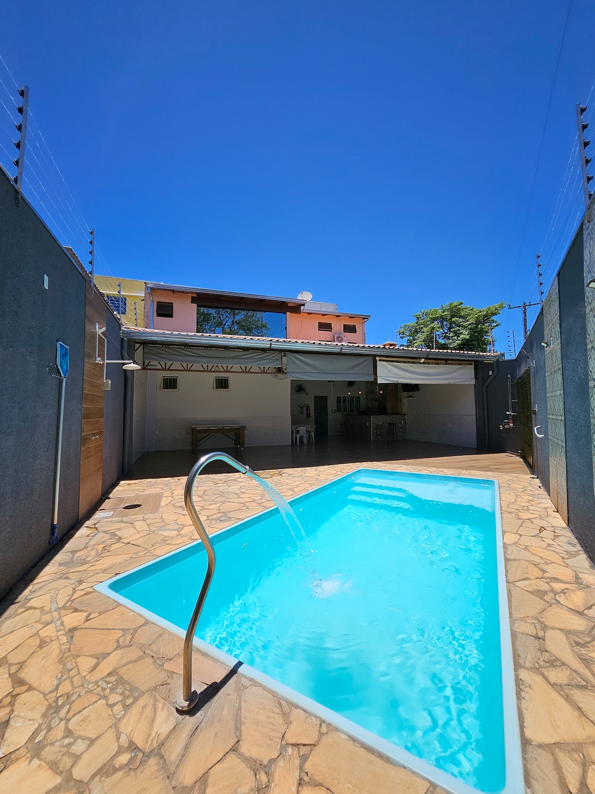 Aproveite um espaço completo e confortável em Lins/SP! Piscina aquecida, área gourmet com churrasqueira, cozinha equipada, Wi-Fi, TV e quartos aconchegantes. Hospeda até 10 pessoas com muito conforto. Perfeito para descansar, reunir família e amigos, celebrar festas ou aproveitar dias especiais em um ambiente privativo e acolhedor.