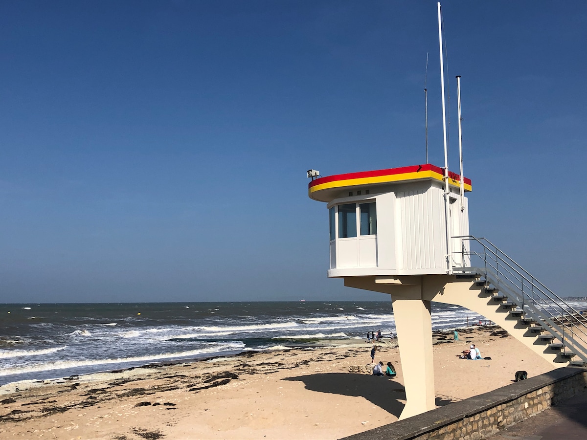 The BALEINE BLEUE... Eyes in the water, 180° of waves, beach, sea wall in Saint-Aubin-sur-Mer, a small seaside resort on the Côte-de-Nacre. LBB has had a makeover: windows, radiators, sofa, bed, mattress, shower, household linen, everything is new, to relax, celebrate DDAY, visit the landing beaches and the hinterland, practice sea sports, play on the sand, listen to the seagulls. La BALEINE BLEUE is the refuge of the dreamer and the adventurer.