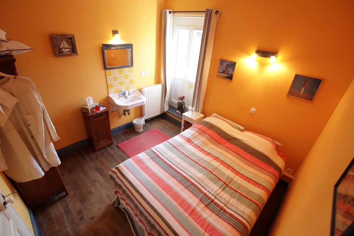 Grande Chambre 2 lits jumeaux pour 2 personnes lits très confortable volet roulant électrisé maison calme Jardin agréable Vous pouvez mettre vos vélos en toute sécurité Salle de bain commune aux 2 chambres. ( douche, toilette, lavabo) Linge de toilette fourni et drap 1km de la plage, Petit déjeuner compris ( café thé ,chocolat, pain beurre , croissant ,confiture maison , yaourt maison , jus orange .. Réfrigérateur à étage disponible pour les deux chambres.