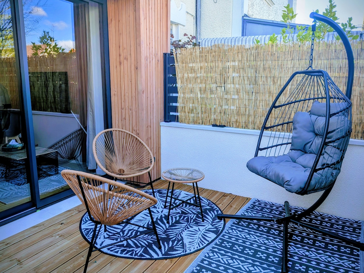 宽敞的单间公寓,带露台和庭院。