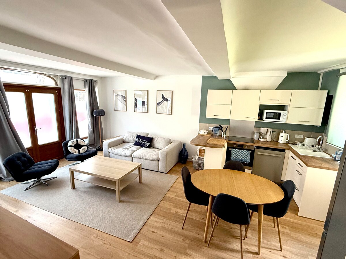 Charmante petite maison en pierre de bord de mer de 30 mètres carrés , calme et reposante, idéalement située à 5 minutes à pied de la mer. Sur deux niveaux, elle comprend un salon/cuisine au rez-de-chaussée, une chambre à l’étage avec une literie de bonne qualité (160 cm x 200 cm) et une salle de bains/wc attenante, équipée d’une petite douche. Petit espace terrasse devant la location avec table de jardin et deux chaises . Arrivée autonome : boîte à clés Été : réservation : samedi au samedi