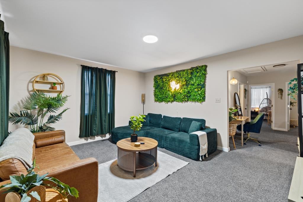 The Barrister's Loft sets the standard for a luxury stay in downtown Goldsboro with its mid-century decor and cozy accommodations. Each bedroom is furnished with a queen-sized bed and offers its own bathroom and walk-in closet. The spacious open-concept living area and kitchen are the perfect gathering place for your group, and a desk space offers the ideal spot to work from your home-away-from-home. Located within walking distance from restaurants, shopping and bars.
