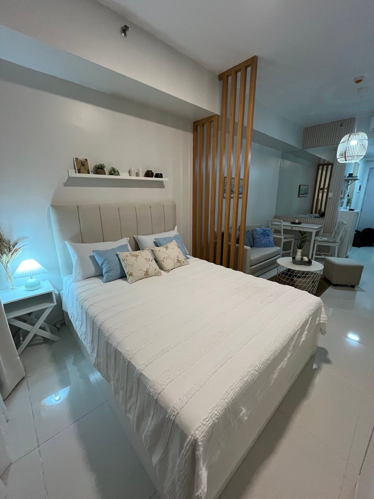 Welcome to a modern nordic design unit located at the roof deck w/ stunning view of mountains. This minimalist place is a perfect place to kick back, relax and enjoy a staycation like no other. Location is very accesible, the building is located along the road of Sta. Rosa - Tagaytay. If you decide to stay home, just lay down and turn on the TV all day long. You can also leave the windows open and sleep through the night with such cool breeze.