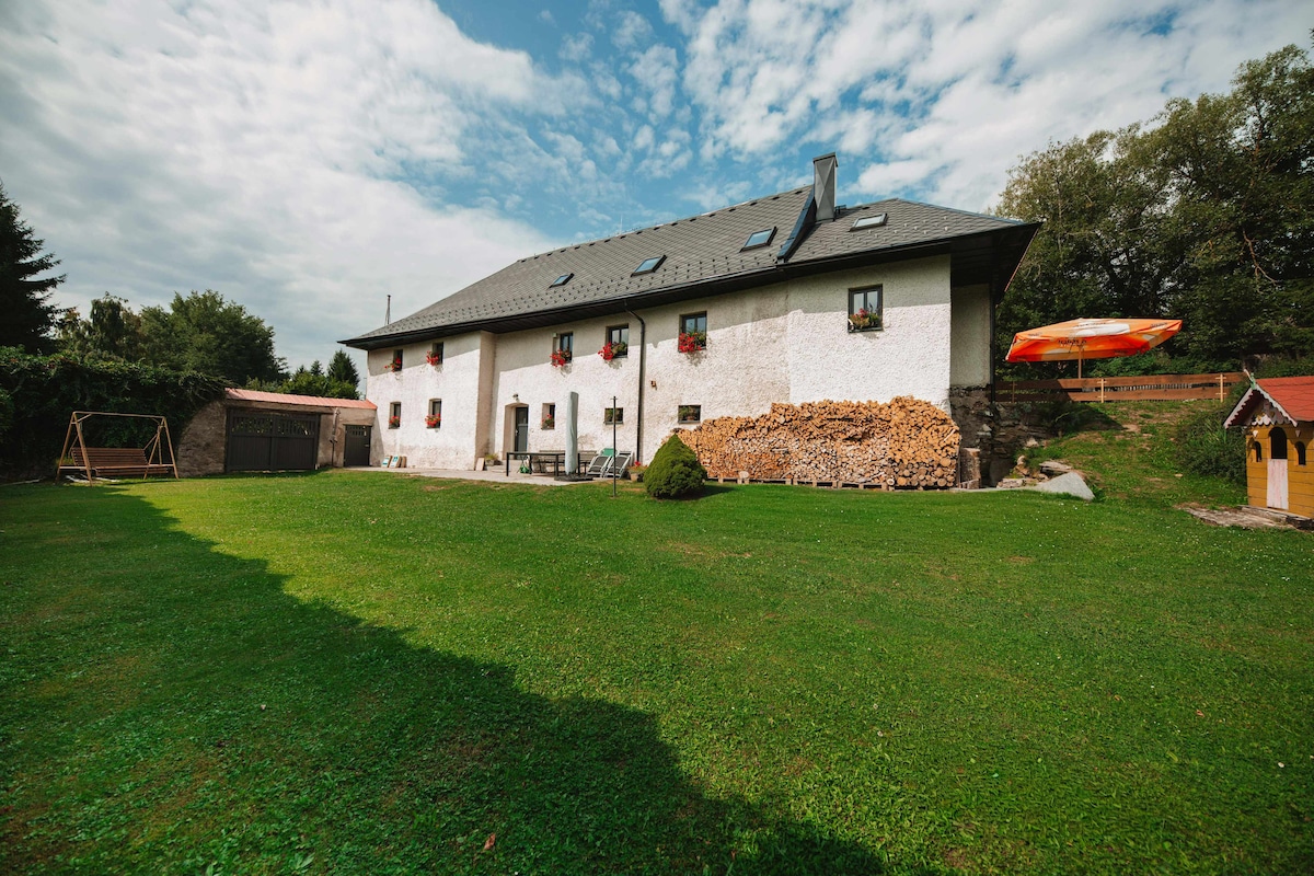 Our house is located in national park Blanský les near village Zlatá Koruna. Český Krumlov-15 min.by car. Train station-village Třísov or Plešovice. By car-tourist path between the villages of Třísov and Plešovice Suitable for families with children. Possibility of arranging a hot tub,if there is enough water. Making a bonfire and BBQ. Parking directly in front of the house.. In the month of July/August we prefer weekly stays with arrival, on request.