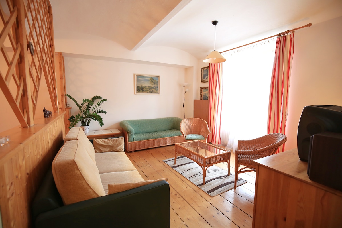 Tento prostorný rodinný apartmán se nachází v samém srdci malebného historického centra Českého Krumlova a je ideálním místem pro rodiny nebo menší skupiny. Nabízí kombinaci komfortu a útulné atmosféry, která vás okamžitě pohltí. Poloha apartmánu je ideální pro prozkoumávání města – všechny hlavní památky, restaurace a kavárny jsou doslova za rohem.