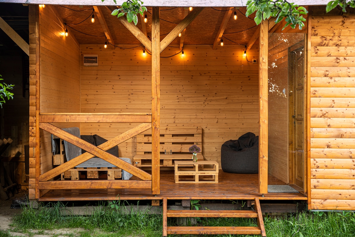 Jacuzzi, víno na přivítanou. Chata je blízko soukromé pláže pro osadníky. Chata se skládá z kuchyně s indukční deskou, troubou, mikrovlnkou, lednicí. Dále obývací pokoj s dvojlůžkem, posezením, krbem, TV. Další místnost je ložnice se 2 lůžky. K dispozici je toaleta a koupelna - sprcha. Vytápění je v koupelně podlahové. Jinde klimatizací, v obýváku romantický krb k doladění atmosféry. Ohniště, plynový gril. Venkovní jacuzzi. Není možné pořádat oslavy a párty.