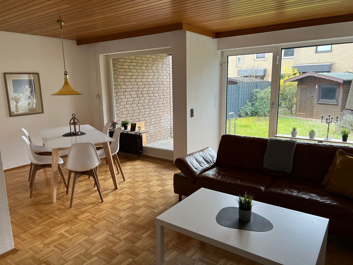 Ruhige Fewo 55m². Gemütlicher Wohnraum, integrierte Küche, mit Schlafsofa, Kamin und TV. Küchenausstattung bietet Geschirrspüler, Kühlschrank inkl. Gefrierfach, Herd, Backofen, Wasserkocher, Eierkocher, Toaster und Kaffeemaschine. 1 Schlafzimmer mit zwei zusammenstehenden Einzelbetten. Badezimmer verfügt über Dusche und WC. Entspannte Grillabende auf Ihrer Terasse oder in unserem Garten. Sauna im Haus gegen Gebühr auf Anfrage nutzbar. WLAN, Fahrradabstellraum und Parkplatz kostenfrei.