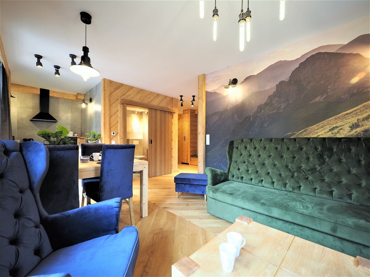 Apartament z jedną sypialnią, w samym centrum miasta Zakopane. Apartament składa się z pokoju dziennego z aneksem kuchennym, sypialnią, łazienką oraz balkonu. Połączenie drewna i klasycznej bieli sprawia że apartament jest niezwykle jasny i przyjemny w codziennym użytkowaniu.