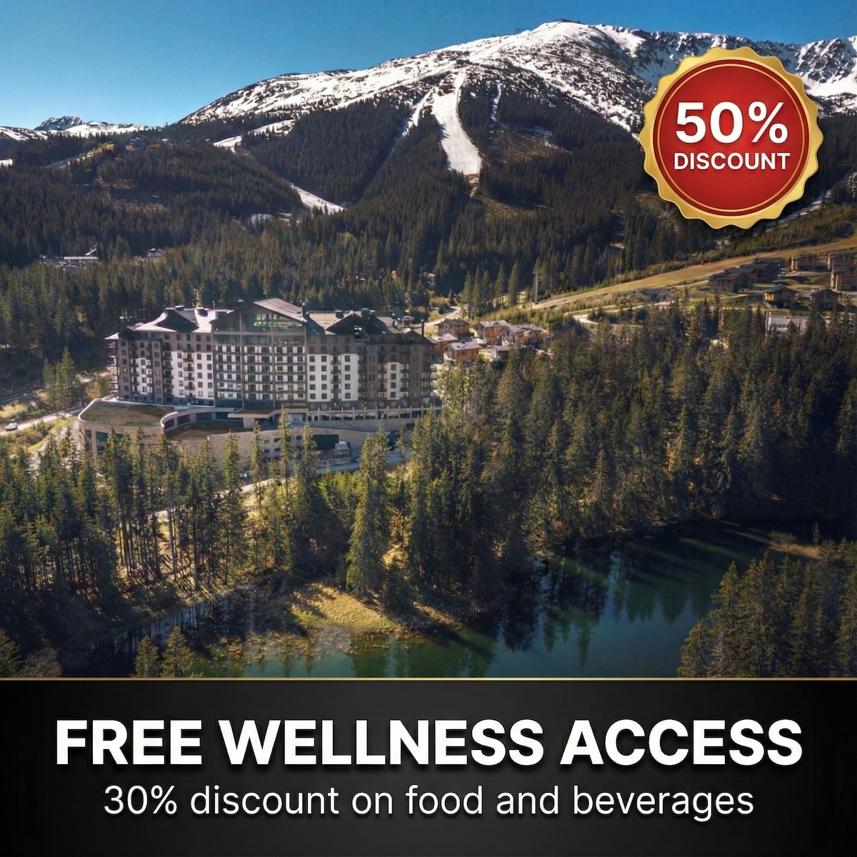 Privately owned Studio King (40 m²) in Hotel Damian 5* with a comfortable king-size bed and a sofa that reclines into an extra bed, accommodating up to 4 guests. Enjoy the private balcony, ideal for morning coffee or evening relaxation. Included in the price: Wellness & Spa access, swimming pool, gym, and a 30% discount on food & beverages at all hotel restaurants and bars.