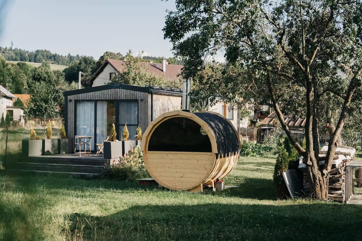 Polne Chaty are unique and charming ecological houses in the bosom of nature. You will experience peace and quiet here, as well as space to spend quality time with yourself, as a couple or with your loved ones. Here you will find a view of the meadows and the majestic Spisz hills, and a few steps from us you will admire the beautiful panorama of the Tatra Mountains. We built the houses for ourselves and we live in one of them, so we will be happy to host you here.