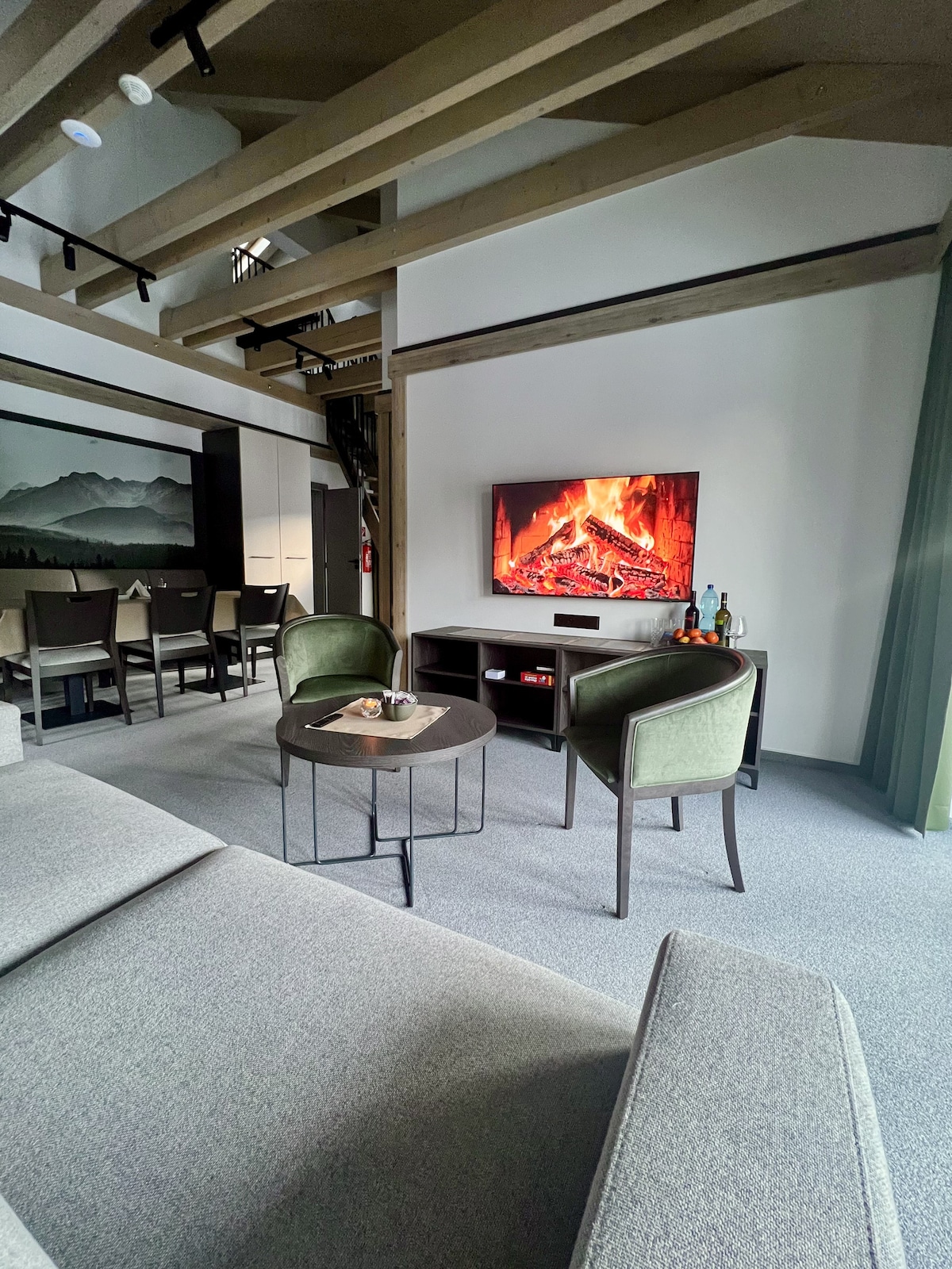 Apartmán Superior - situovaný v centre strediska Jasná, ktoré je ideálne pre športových nadšencov, ponúka pohodlie a horskú atmosféru v každom ročnom období. priestor apartmánu je pripravený vyhovieť každej rodine, či skupine. Apartmán disponuje spálňou s manželskou posteľou a vlastnou kúpeľňou, dvojlôžkovou spálňou a kúpeľňou so sprchovacím kútom. V každom apartmáne sa nachádza obývačka s rozkladacím gaučom a kuchyňa s kompletným vybavením.