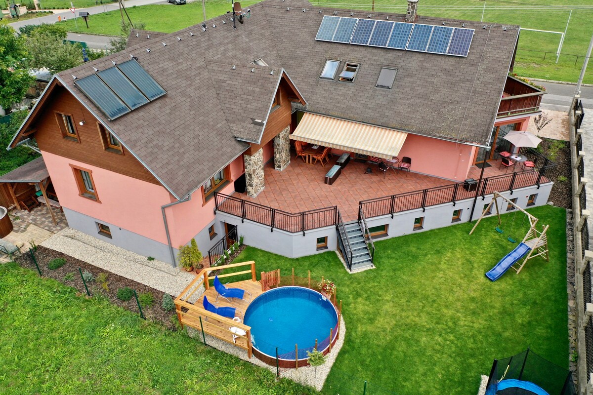 Oour cozy house is located in the scenic Liptov region, near Kvačianska Valley and Liptovská Mara. Perfect for exploring Slovakia’s nature, it offers a private sauna, summer pool, and a spacious garden with a trampoline. Families will love meeting our friendly farm animals. The house is fully equipped for a comfortable stay.