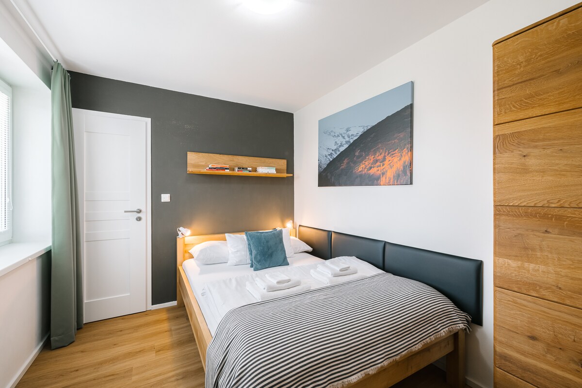 Moderný byt s vyhľadom na hory priamo v centre. Byt je čerstvo zrekonštruovaný, situovaný na 10. poschodí (s výťahom), ktorý zaručuje pokoj a zároveň nádherný panoramatický výhľad na hory. Byt je ideálny pre pár, rodinu aj menšiu partiu ľudí. Nachádza sa priamo v centre mesta - všetko potrebné máte na dosah – obchody, kaviarne, reštaurácie. Autobusová a vlaková stanica hneď cez cestu, centrum mesta 5 minút chôdze. Ak hľadáte pohodlie, lokalitu a výhľad, tento byt je pre vás ako stvorený!