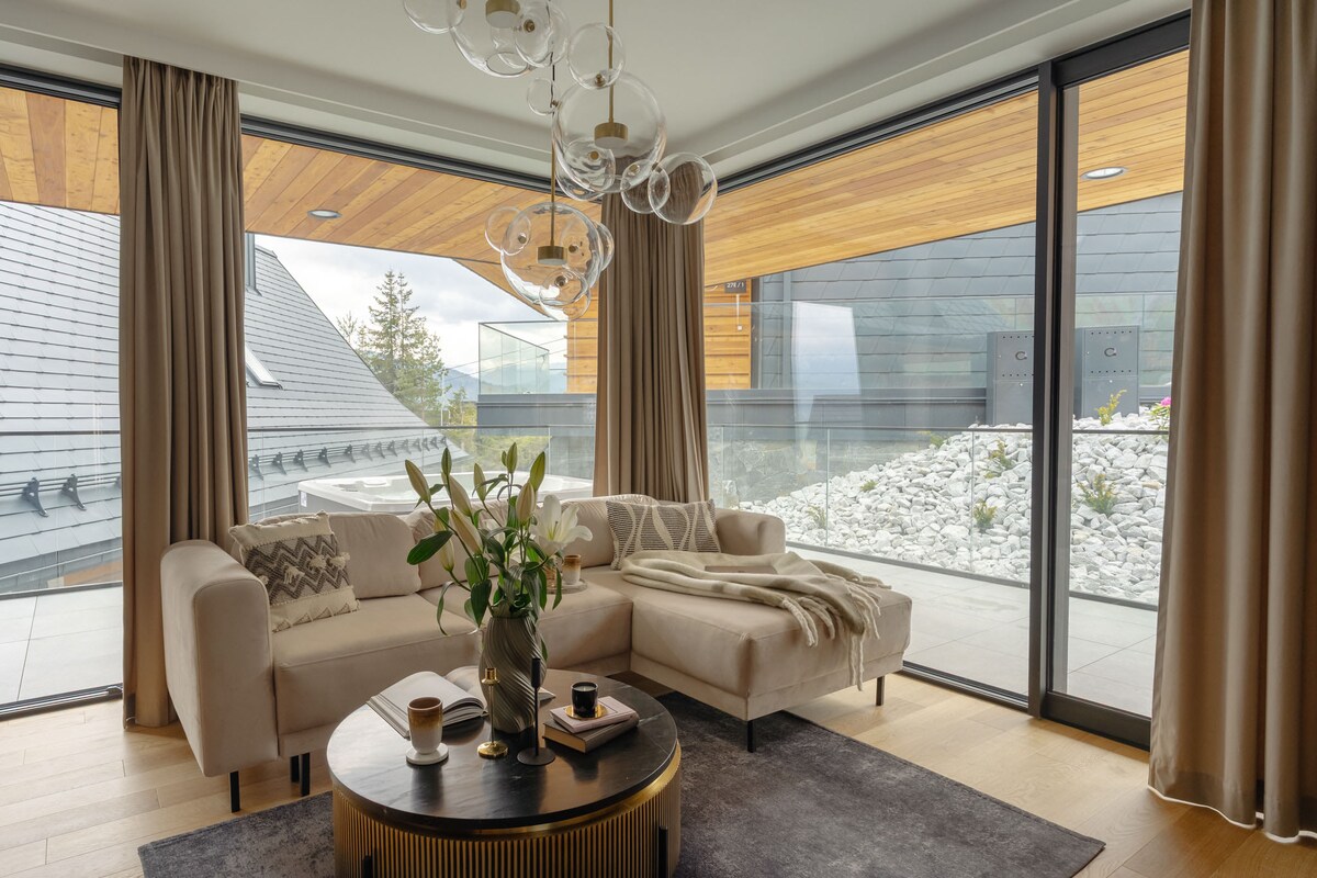 Panorama_M05 is a modern apartment for 2–4 people with a stunning view of the Tatra Mountains. It includes a living room with a kitchenette, a bedroom, bathroom, and patio. Both rooms feature Italian-style sofa beds with quality mattresses. Apartment Panorama_M05 is an excellent choice for a romantic getaway for two, friends, or a family stay. An additional advantage is the parking space in the underground garage (max. height 2 meters), equipped with a private electric vehicle charging station.