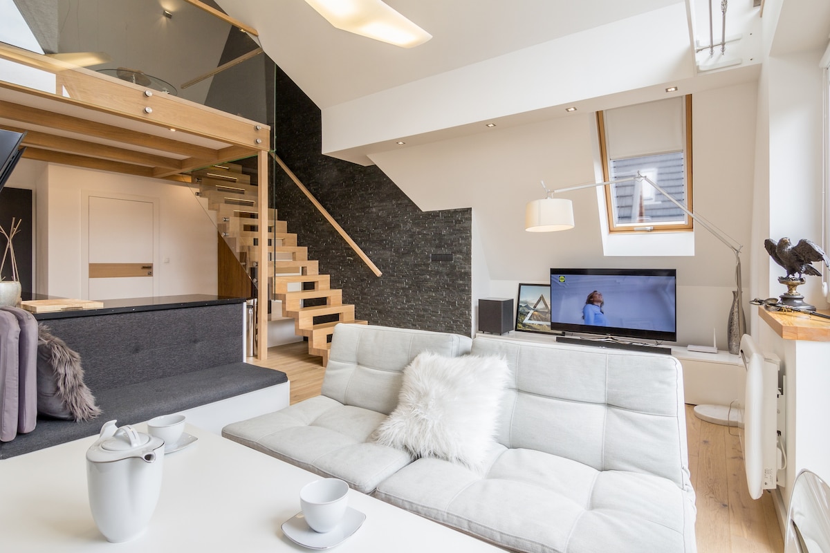 APARTAMENT KAWOWY jest przytulnie i stylowo urządzonym miejscem, w którym niejeden gość poczuje się, jak w górskiej chacie. Wrażenie takie przywołuje duża ilość drewna, jakim wykończone zostało to pełne uroku i stylu wnętrze. Dodatkowym atutem miejsca jest jasny balkon, z którego roztacza się widok na góry oraz ciepły salon wyposażony w kominek. Apartament znajduje się w zacisznej części miasta, z dala od zgiełku i hałasu, ale tylko kilka minut autem od centrum.