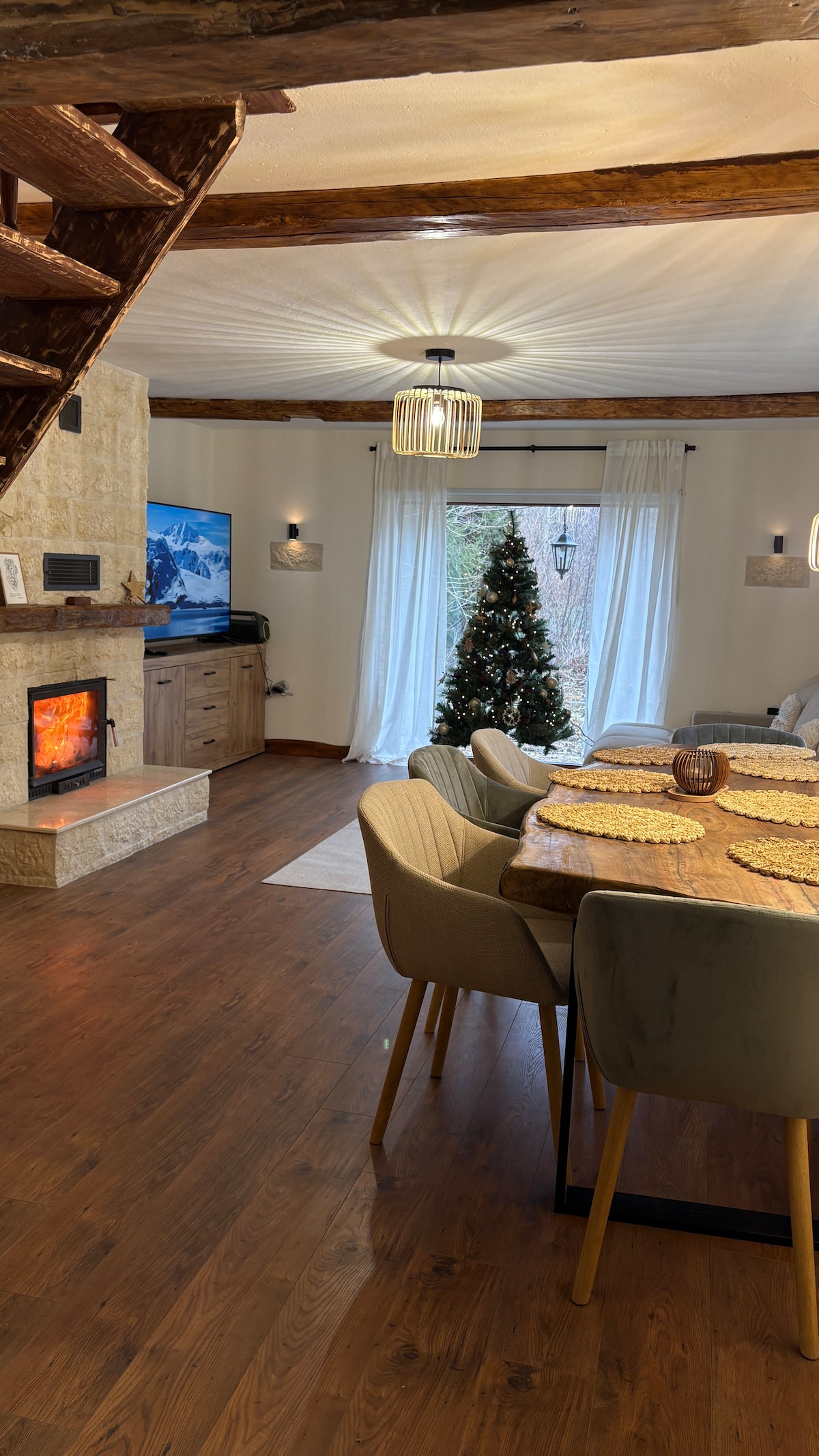 Built in a traditional style, Lisa Chalet has a spectacular view of the Făgăraș Mountains. The open plan living space with floor to ceiling panoramic windows and traditional wooden beams offers a desirable space for entertaining and also relaxing. The chalet is fully equipped with everything you need so that you can make your vacantion comfortable. This cozy mountain chalet allows you to reconnect with nature and relieve the stress of your day-to-day.