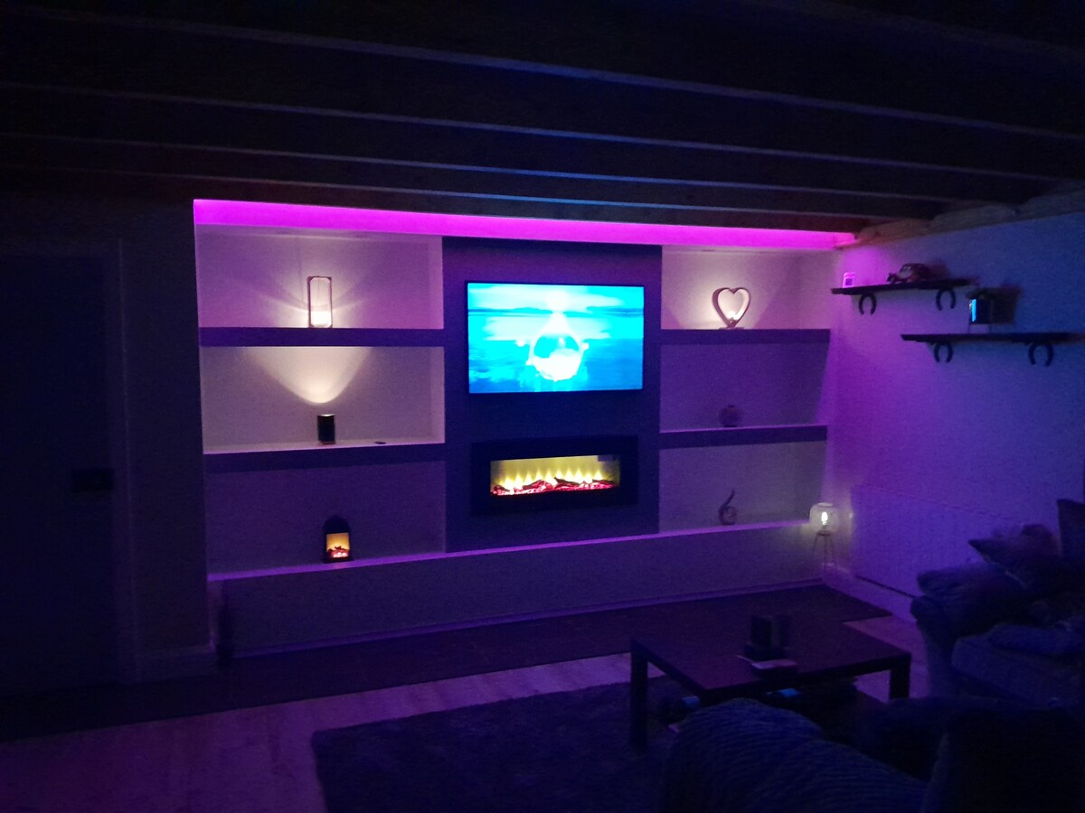 Unwind at this stunning luxury cottage. The house was lovingly built with slate floors,wood beamed ceilings,cottage doors,old style kitchen,stone work and antique details for a luxurious yet charming feel. Enjoy mountain views from and lush garden and seating area...The house is located a short drive from Foxford famous know for fishing on the river Moy... Although shops, restaurants and pubs are only a five-minute drive away, the area feels peaceful and secluded and on the foxford walk way...