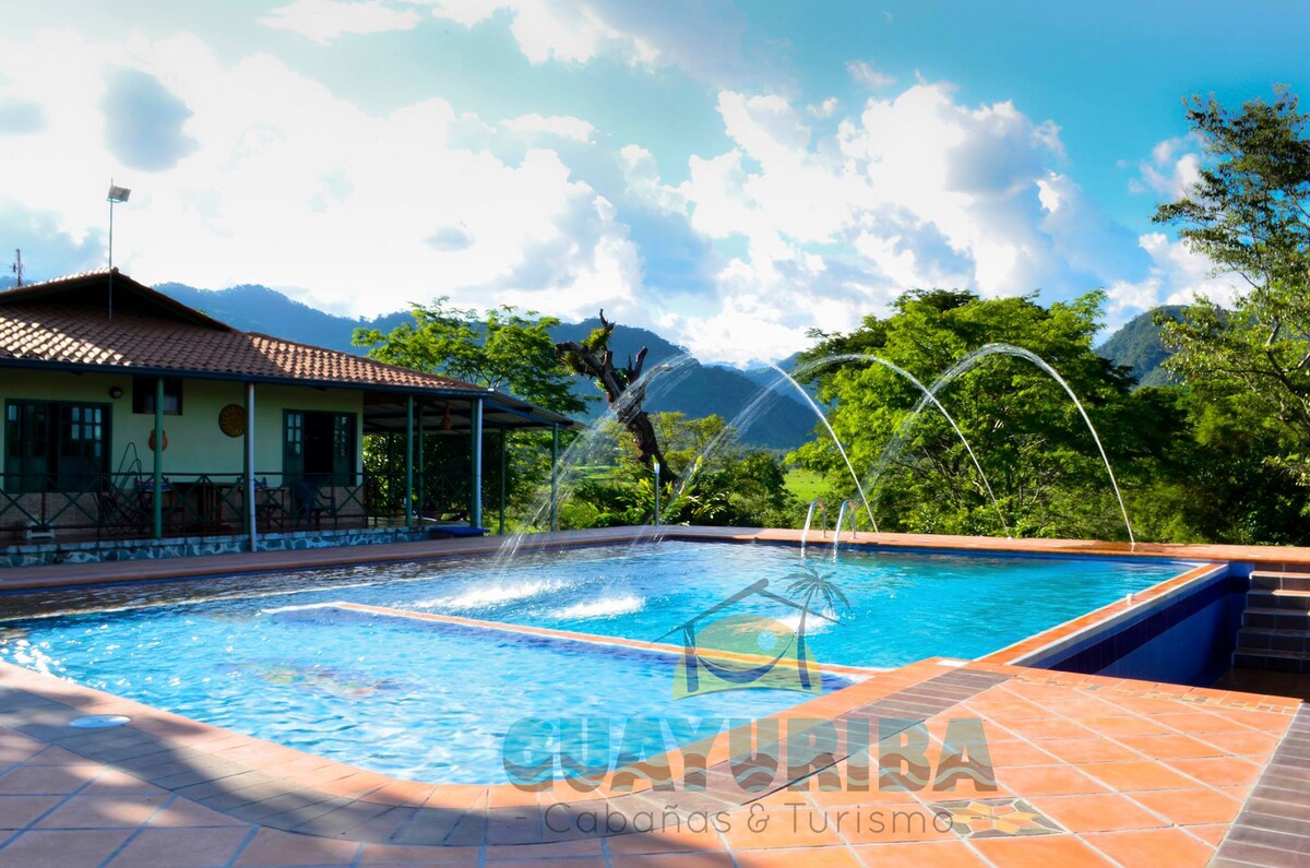 Confortable y hermosa finca en las Montañas, en los llanos orientales, tierra caliente con piscina, jacuzzi, Terrazas con mirador, para que disfrutes con toda tu familia, te relajes y te conectes directamente con la naturaleza, solo aire puro se respira allí. A tan solo 20 mn. De la ciudad. Ideal para estancias largas o cortas, si trabajas en la zona petrolera y quieres un lugar tranquilo para trabajar desde casa, este es el lugar indicado. Capacidad máxima hasta para 18 personas