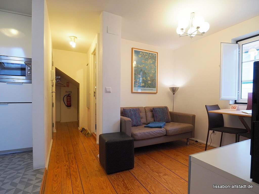 New apartment fully renovated, equipped with air conditioning and heating, it's located in the heart of Alfama district. This bright and beautiful apartment, 3rd floor, is great for Couples and Friends! Combines a cozy atmosphere, nice decor and modern amenities. Can fit up to 3 people (4 people with young kids u13), divided by 1 room with double bed, and a sofa-bed in the living room.