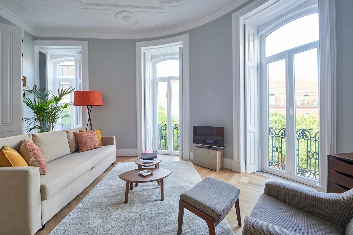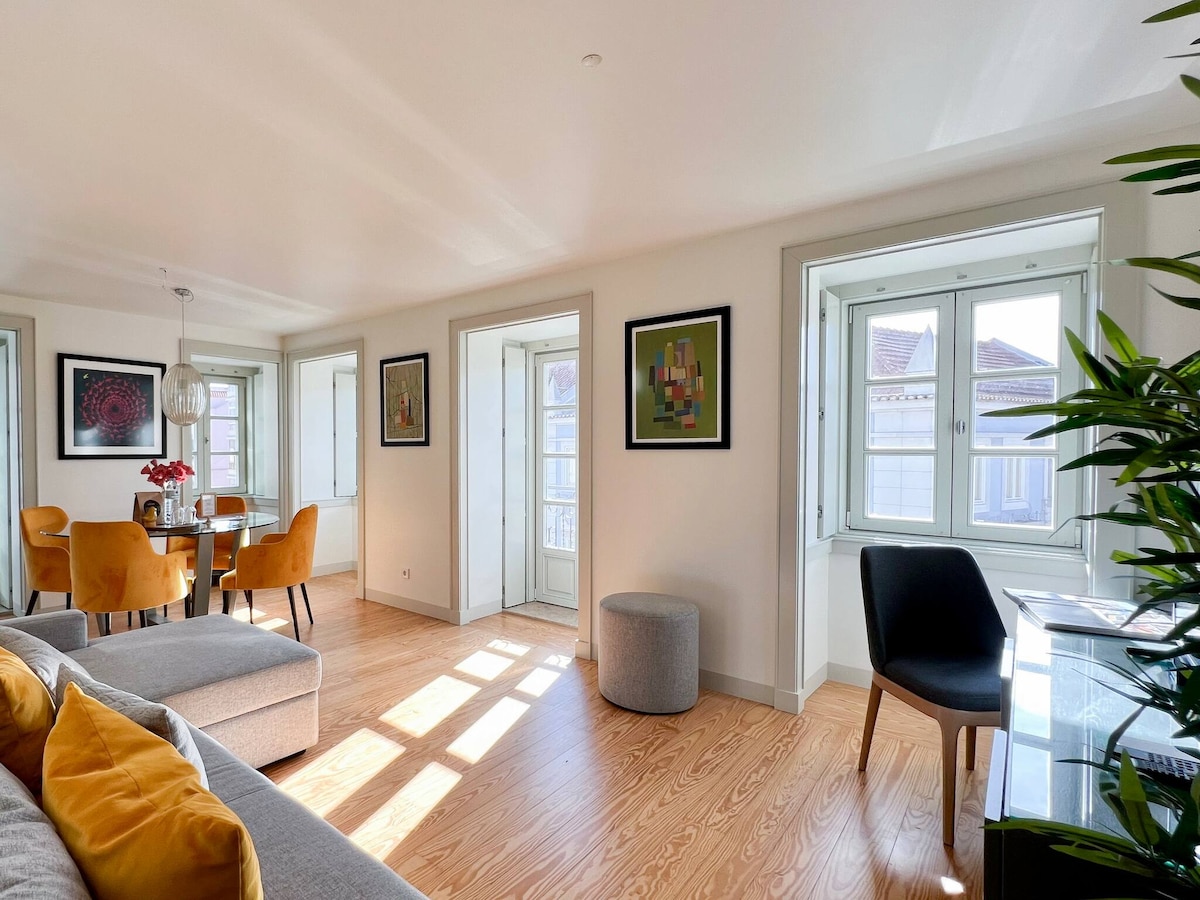 This trendy and stylish apartment is located in Baixa, Lisbon downtown, in a very central location and very close to Chiado. The decoration is upscale with beautiful paintings in the living room and comfortable setting throughout the entire flat with A/C. Recently refurbished, the building maintains the traditional character of Baixa, yet modern inside with two elevators. Just walk out from the building into the heart of Baixa where you can dine, shop and enjoy the best Lisbon has to offer!