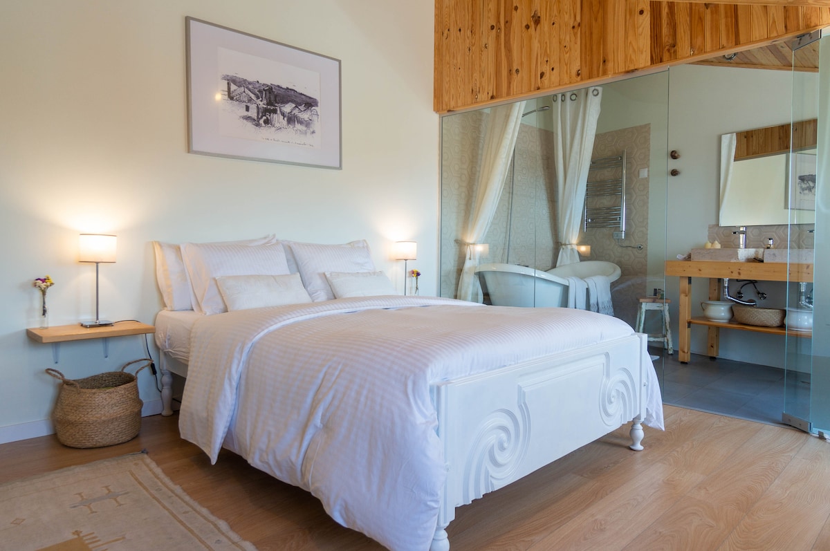 Pirica’s room was born in 2017. Is a new, cozy suite with an amazing bathroom and outside terrace with a stunning view to Atlantic ocean and Sintra mountain. Is set in the heart of picturesque village of Penedo * This suite is independent of our house, what allows to our guests have more privacy * In 2024 we decided to renovate and improve the interior space and also do a completely make over of all the house exterior spaces. We offer a peaceful and well decorated space, with lots of history!