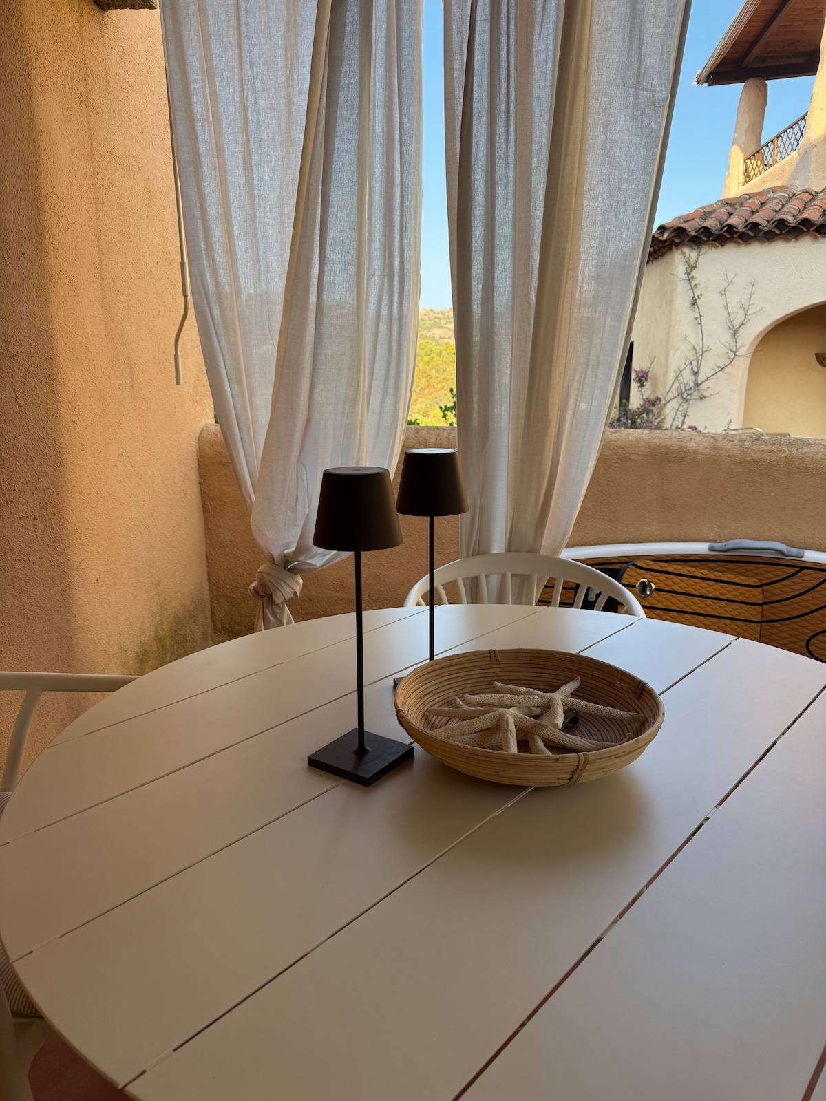 Welcome to Baja Sardinia! Wake up to the sound of the sea and enjoy breathtaking views from your private veranda in beautiful Baja Sardinia. Our charming stone-built apartment offers a romantic escape just steps from the beach and lively piazza. Relax by the shared pool or walk to iconic beach clubs like Phi Beach and Ritual. Wi-Fi, smart TV, and coastal charm included—Sardinia at its best!