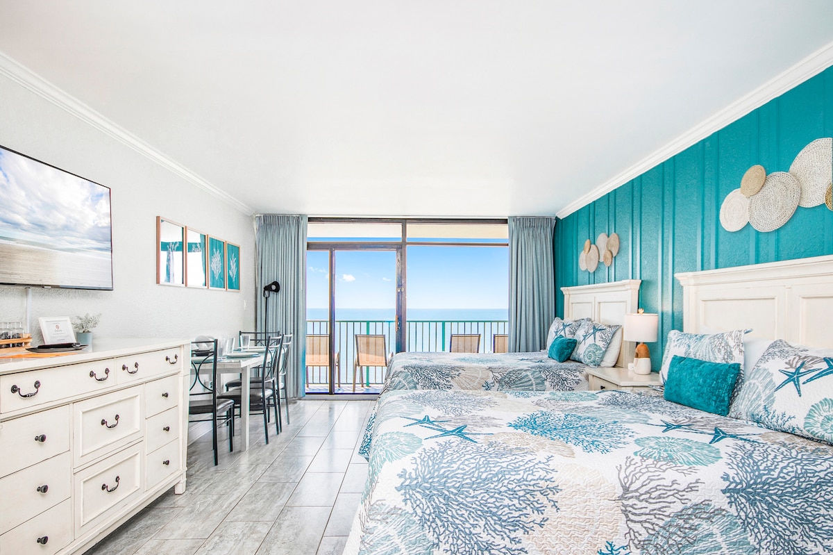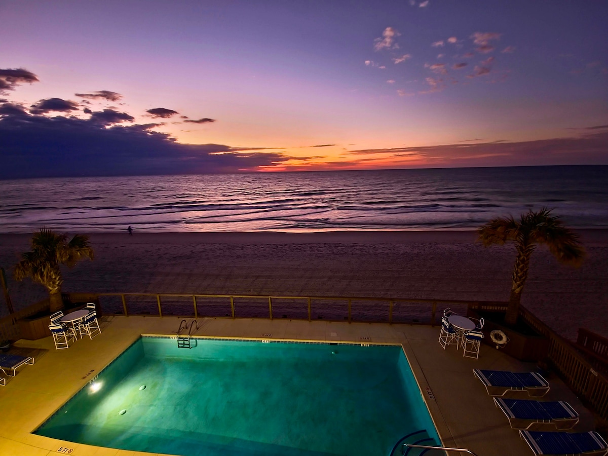 Enjoy DIRECT OCEANFRONT views from this COMPLETELY RENOVATED PENTHOUSE level, 10th floor 1 bedroom (KING size bed), 1 bath condo. Relax amidst the sights & sounds of ocean waves hitting the shoreline. Lounge on your oversized private DIRECT OCEANFRONT oversized balcony with panoramic view or take a dip in the pool...GREAT VIEWS TOO! Some advertised "Bluewater oceanfront" condos are really ONLY Oceanview! Don't be fooled. ALL OUR CONDOS ARE DIRECT OCEANFRONT Minimum Rental Age 25