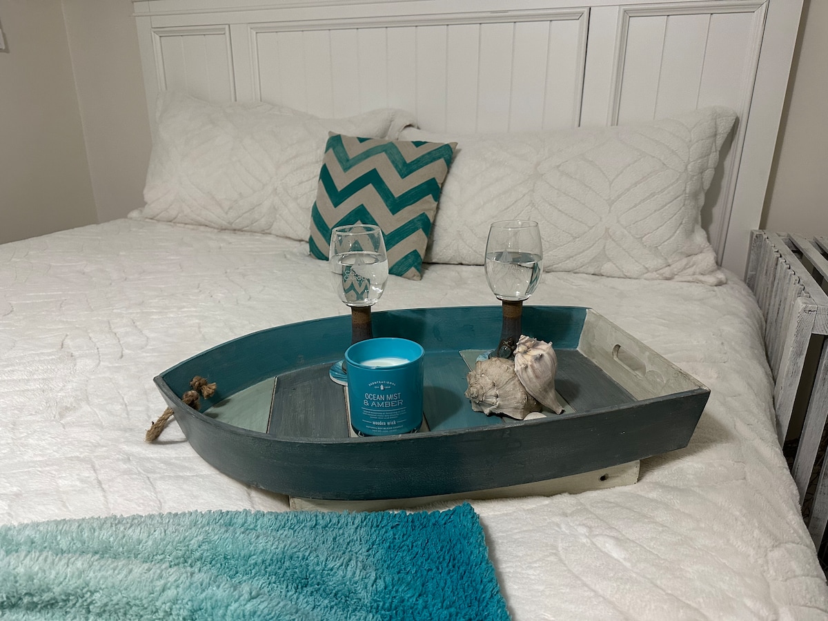 乡村魅力,加大双人床,骑自行车前往海滩,艺术墙
