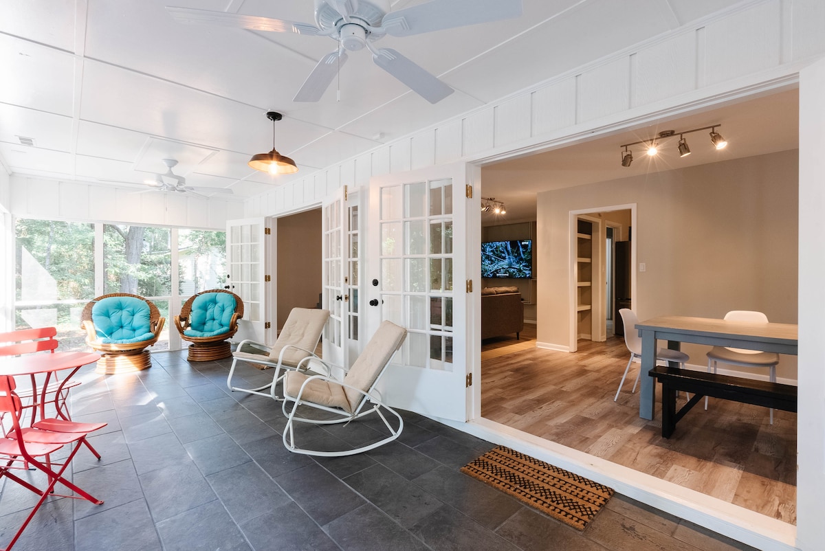 FREE family and dog friendly BEACHES, just 5 MINUTES away! BOATERS WELCOME, with HAGLEY LANDING FREE BOAT LAUNCH ONLY 1/3 MILE, featuring the INTRACOASTAL. Pawleys Island is The Oldest Seaside Resort in the US with its unique shops and restaurants. Our Rustic-Coastal cottage is hidden under Mossy Oaks off a dirt road with ample parking. Quiet, private fenced patio for star gazing or morning coffee. Savor the quiet serenity or take a stroll & linger at the spectacular sunsets at Hagley Landing!