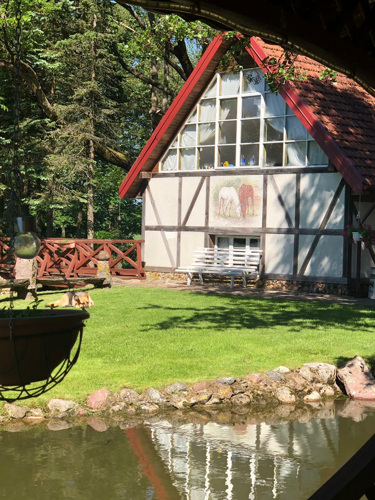 The cottage is in the depths of the homestead, next to the forest ... On the first floor there is a separate bedroom with a large double bed, a living room with a kitchenette, a WC/shower room, an outdoor terrace, on the second floor there are 2 single beds. Nearby is a large green meadow volleyball court and a children's play area. Next to your service our homestead Restaurant Le Le Terrace with the most beautiful view of a lake, which is only 50 meters away. There is also a lakefront...