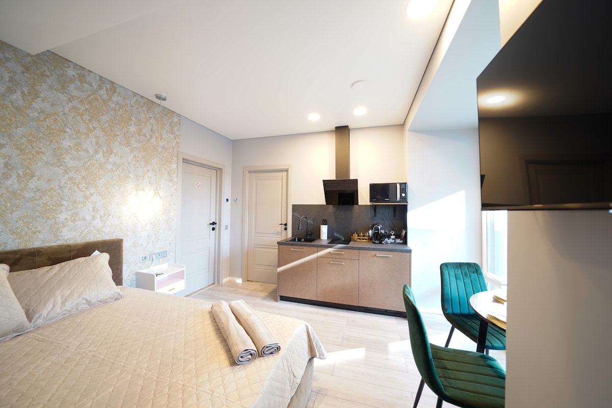 A stylish and newly furnished one bedroom cozy studio with a hotel based amenities in the heart of old town. It features a comfortable double bed, a sofa , equipped kitchen with a variety tea selection, a multi-purpose desk for work & leisure, bathroom with shower. Since the apt. is situated in the old town, it is surrounded by old city market, lively bars as well as lovely narrow streets. You will be sent a key code to enter your room. Copy of your ID will be asked for the online check-in app