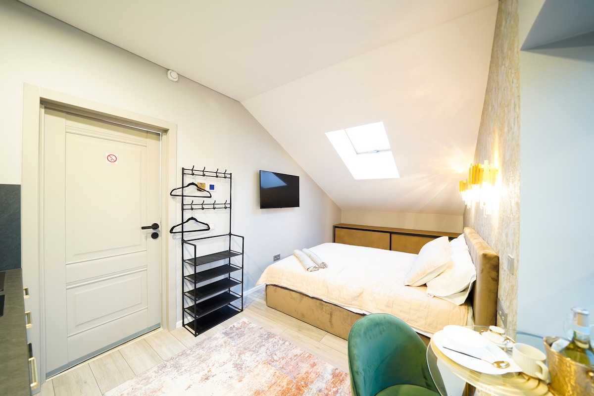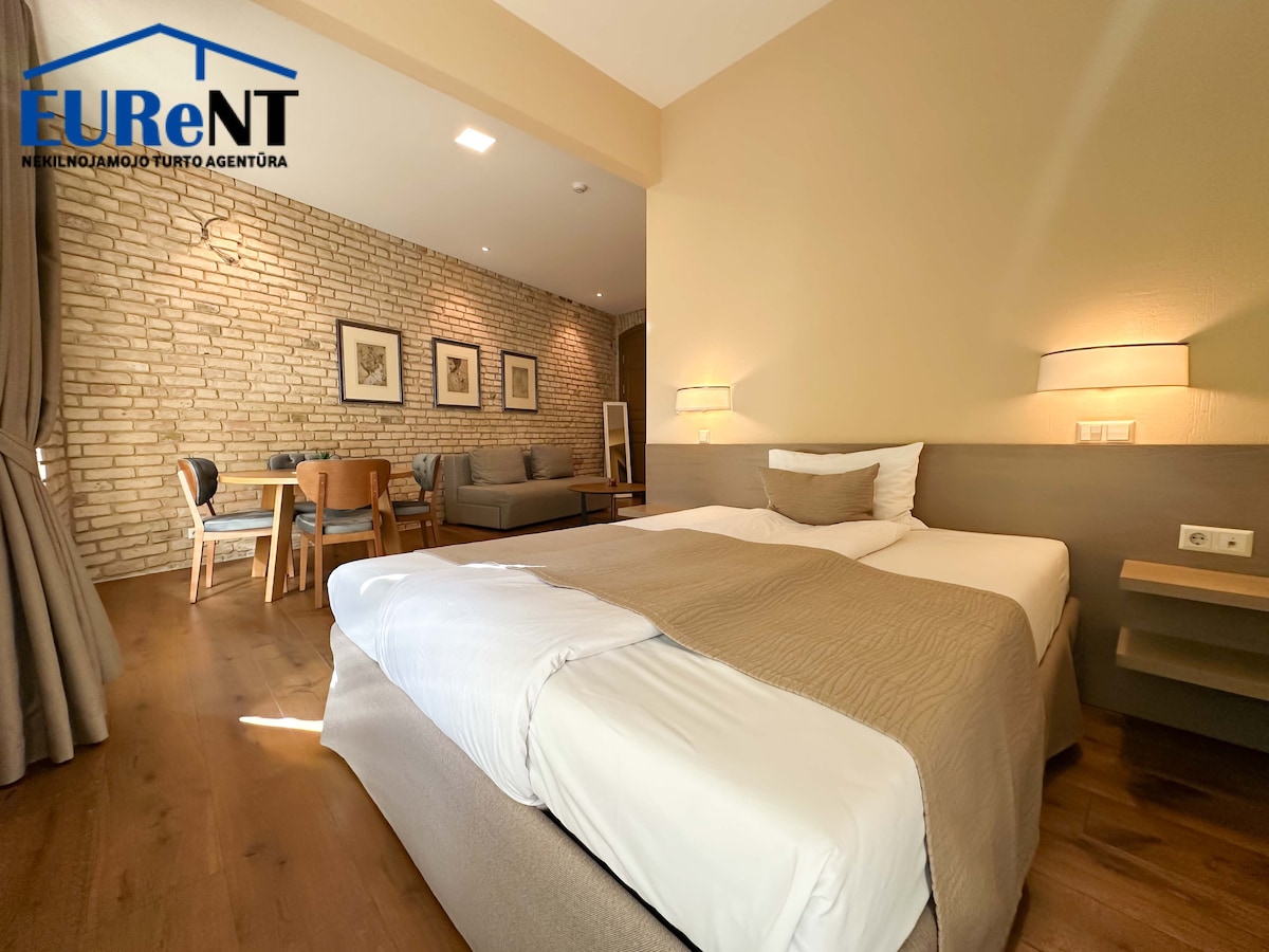Stay in the heart of Vilnius old town, just 30 meters from the Town Hall. The renovated historic building features modern amenities, comfortable furnishings, and a warm decor - natural, earthy tones dominate. Perfect for couples or solo travelers, ideal location for exploring the city's attractions. Book now and enjoy a wonderful time in Vilnius!